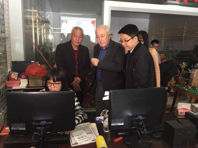在揭期間,Hassler教授還為跨境電商產(chǎn)業(yè)園區(qū)做指導(dǎo)培訓(xùn)工作,為跨境電商展示領(lǐng)域提供咨詢和建議,同時(shí)對(duì)廣東中德電子商務(wù)有限公司和特色德國(guó)店線上+線下的銷售模式進(jìn)行指導(dǎo)。