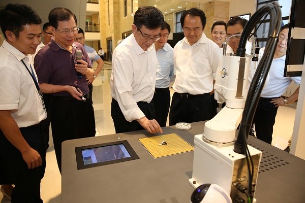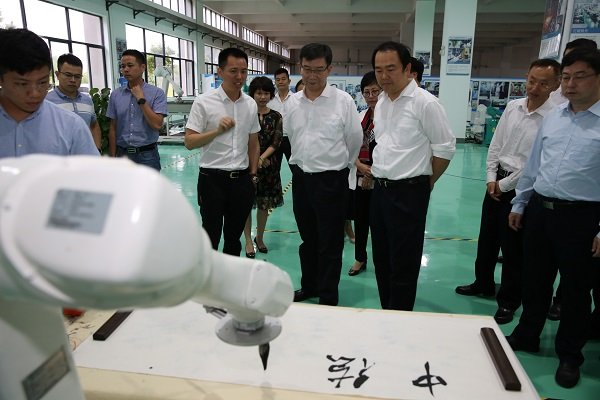 在考察中德巨輪智能工業(yè)4.0產(chǎn)業(yè)基地項(xiàng)目時(shí),黃副省長一行觀看巨輪機(jī)器人作業(yè)演示,并對(duì)巨輪的智能裝備水平表示肯定,鼓勵(lì)巨輪不斷提高智能制造技術(shù)。