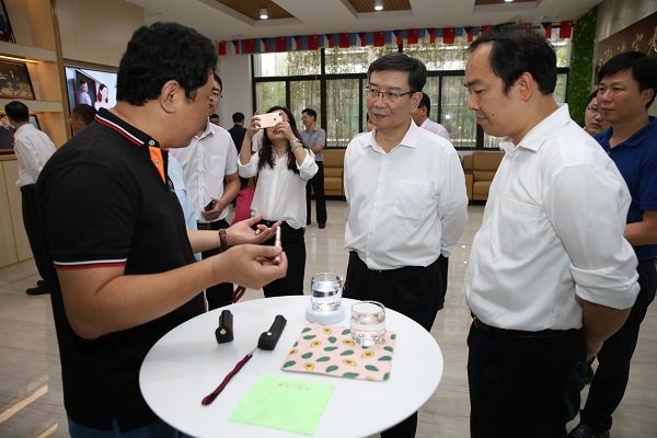 在廣東大宇環(huán)保高新技術(shù)有限公司做環(huán)保科技創(chuàng)新產(chǎn)業(yè)這一調(diào)研工作時(shí),黃副省長聽取工作人員講解水凈化筆的創(chuàng)新技術(shù),觀看水凈化筆演示殺菌消毒時(shí)指出:要讓大宇水凈化筆充分發(fā)揮它的作用,讓更多人知道這款產(chǎn)品不僅僅作用在凈水殺菌上。