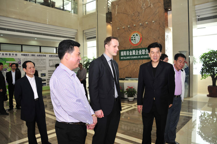 3月18日,德國(guó)沙爾平戰(zhàn)略發(fā)展咨詢有限公司代表杰瑞海德曼參觀調(diào)研揭陽(yáng)市金屬企業(yè)聯(lián)合會(huì),揭陽(yáng)市政協(xié)副主席、市長(zhǎng)助理陳定雄,揭陽(yáng)市外經(jīng)貿(mào)局局長(zhǎng)盧培群、揭東區(qū)副區(qū)長(zhǎng)林炳華、揭陽(yáng)市金屬企業(yè)聯(lián)合會(huì)執(zhí)行會(huì)長(zhǎng)林耿興、林眾偉共同出席座談會(huì)。