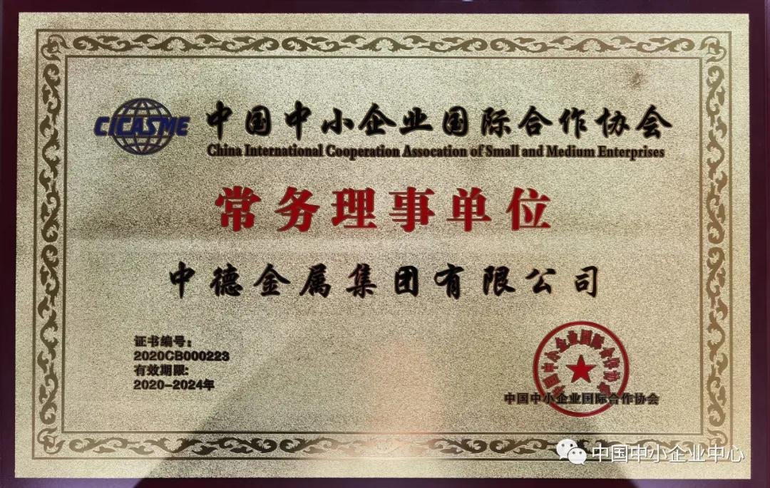 憑借在助推中小企業(yè)對(duì)外合作和創(chuàng)新發(fā)展方面的不懈努力和突出成績,中德金屬集團(tuán)獲選中國中小企業(yè)國際合作協(xié)會(huì)常務(wù)理事單位,這是國家級(jí)行業(yè)協(xié)會(huì)對(duì)中德金屬集團(tuán)服務(wù)中歐中小企業(yè)雙向合作工作的高度認(rèn)可,也是對(duì)集團(tuán)在中小企業(yè)創(chuàng)新發(fā)展工作中突出貢獻(xiàn)的充分肯定,意味著中德金屬集團(tuán)將更好地為國內(nèi)中小企業(yè)提供更大的合作平臺(tái)和海內(nèi)外資源。