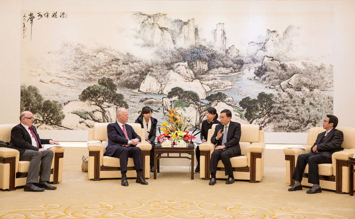 昨日下午,省長朱小丹在廣州會見了中德金屬生態(tài)城項目的德國合作伙伴魯?shù)婪蛏碃柶綉?zhàn)略咨詢交流有限責任公司董事長魯?shù)婪颉ど碃柶、達姆施塔特應用科技大學校長拉夫·史登格勒一行。