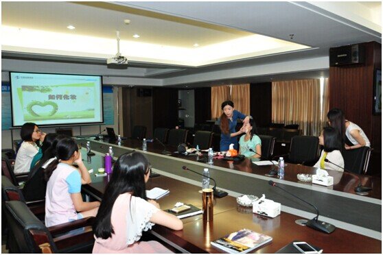 鄭小姐通過現(xiàn)場化妝示范展開培訓,并從第一步護膚到描眉、畫眼線、上唇彩等注意事項做了詳細的解說。女性員工在觀摩示范的同時,不時向培訓師詢問了化妝品牌、著裝打扮、配飾搭配等方面的問題。鄭小姐結合自身經驗,——做了細致的解答。整場培訓內容切合實際,氣氛輕松活潑,贏得在場員工的熱烈掌聲。此外,她給在座員工傳閱了《人影攝像化妝指南》一書,通過全面的化妝理論知識,讓學員對職場妝扮有了更為深入的了解。