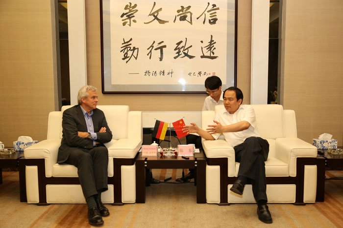 2014年7月24日至25日,德國維斯塔(WISTA)公司總裁哈迪·史密斯(Hardy Schmitz)一行來揭考察中德金屬生態(tài)城項(xiàng)目。揭陽市委副書記、市長陳東會見了哈迪·史密斯一行,雙方就加強(qiáng)園區(qū)管理合作等事宜進(jìn)行深入交流,并達(dá)成一攬子工作細(xì)則。