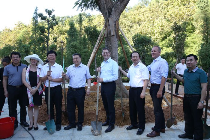 當(dāng)天下午,出席對(duì)話會(huì)的中德領(lǐng)導(dǎo)嘉賓還前往中德金屬生態(tài)城參觀考察,并出席中德金屬生態(tài)城萬(wàn)畝森林公園開(kāi)園儀式,共同種下象征中德友誼的鳳凰樹(shù)。
