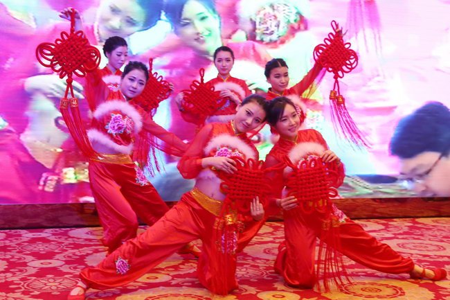 隨后,開(kāi)場(chǎng)民族歌舞《好運(yùn)來(lái)》火熱開(kāi)幕,把現(xiàn)場(chǎng)氣氛點(diǎn)綴得熱鬧、溫馨。精心編排的古箏合奏、三句半、歌舞、魔術(shù)等節(jié)目輪番上演,形式各異,贏得在場(chǎng)陣陣掌聲。其中,小品《五大中心賣(mài)瘋了》將中德金屬生態(tài)城的首期核心項(xiàng)目融入到小品當(dāng)中,燃起了全場(chǎng)的高潮,讓觀眾在爆笑之余對(duì)公司項(xiàng)目有了更深的印象。觀賞之余,在座的外賓按耐不住內(nèi)心的歡樂(lè),登臺(tái)參與游戲環(huán)節(jié)。中西合璧的團(tuán)隊(duì)競(jìng)賽,兩種文化的完美交融,讓這次年會(huì)別有一番意義。