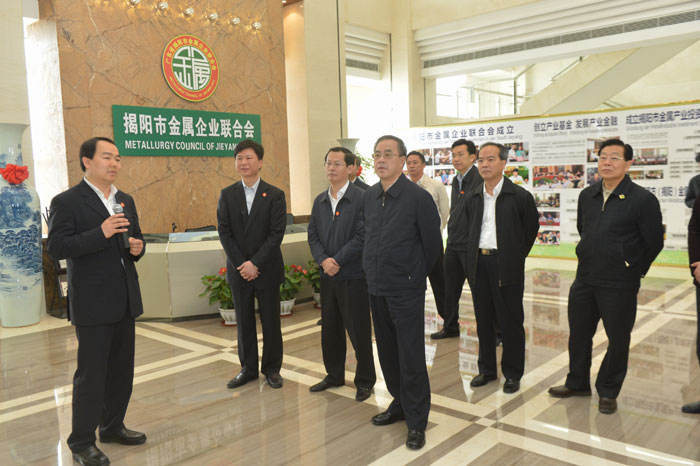 參觀過程中,胡春華書記充分肯定了揭陽市金屬企業(yè)聯(lián)合會創(chuàng)新型的實現(xiàn)政府引導、協(xié)會主導、市場化運作模式,強調要把加快揭陽金屬產業(yè)經濟發(fā)展作為重要任務,為加快打造粵東經濟增長極、沿海經濟增長極,為努力走出一條粵東城市群建設發(fā)展新路做出先進表率。胡春華書記深入市金屬企業(yè)聯(lián)合會調研指出,我市加快金屬產業(yè)轉型升級的工作思路很好,工作措施扎實推進,要求市相關部門認真抓好落實,把揭陽市金屬產業(yè)發(fā)展的宏偉藍圖變成現(xiàn)實。