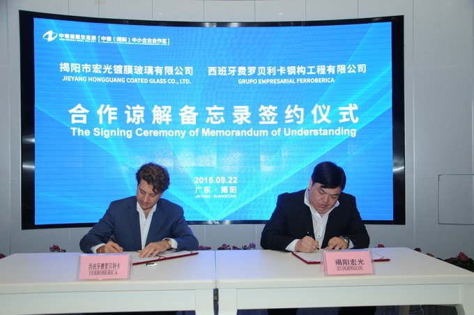 市宏光鍍膜玻璃有限公司與西班牙費羅貝利卡鋼構(gòu)工程有限公司簽署合作諒解備忘錄