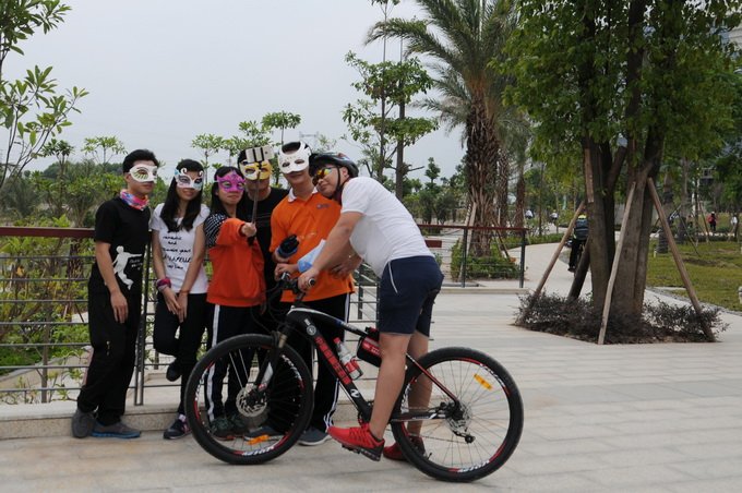 抵達(dá)中德金屬生態(tài)城后,騎友們?cè)谛纬伞耙缓觾砂丁鄙鷳B(tài)風(fēng)景的雕塑公園參觀游賞。隨后,大家前往萬畝森林公園,開始萬圣節(jié)主題活動(dòng)。作為活動(dòng)的壓軸大戲,“撕名牌”游戲?qū)F(xiàn)場(chǎng)的氣氛推向了高潮。一時(shí)間,整個(gè)森林公園歡樂爆棚,倍增了生機(jī)與活力。